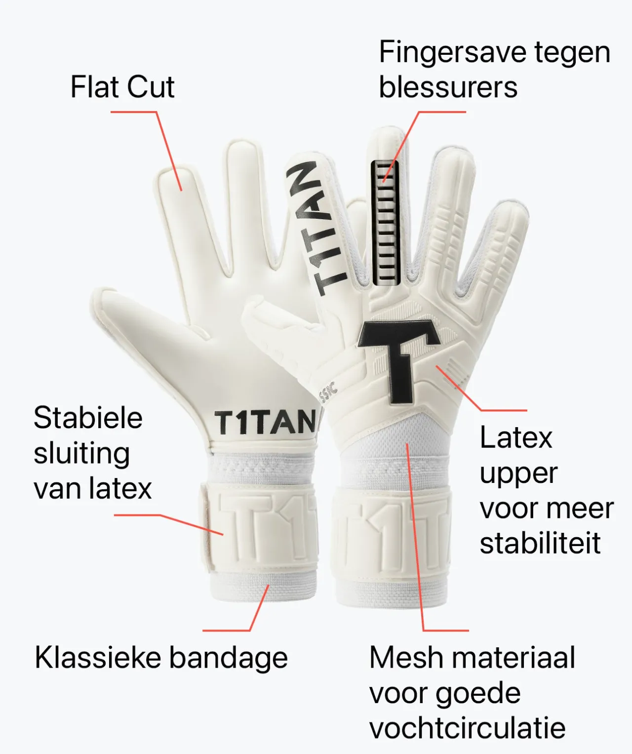 Geïnspireerd door onze beste profmodellen: de CLASSIC 1.0 WHITE-OUT biedt je sterke grip en is extreem slijtvast. Dit maakt het de perfecte T1TAN handschoen voor ambitieuze, beginners en veeleisende keepers.